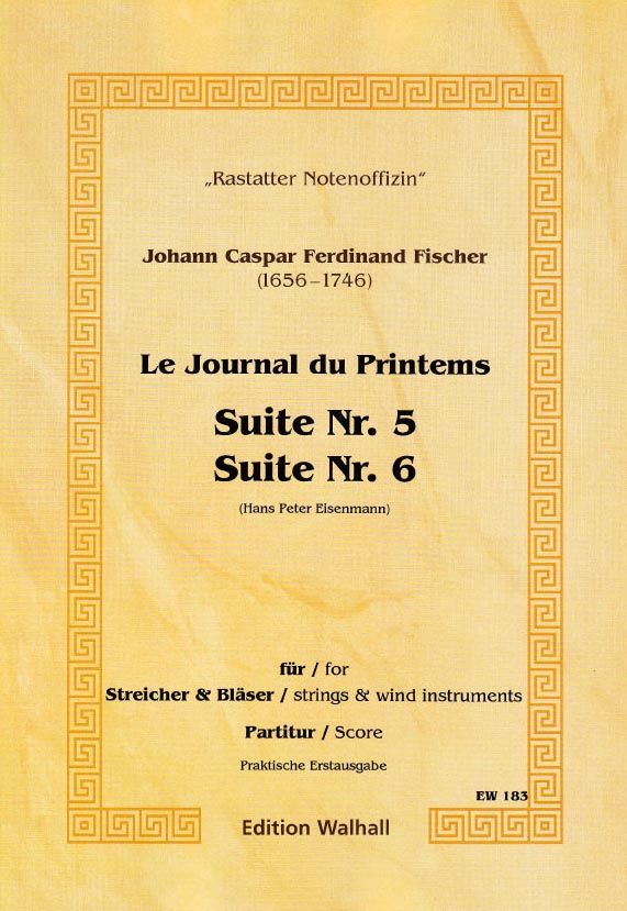 8 (Orchester) Suiten, FWV 1-8, für Dessus (1.Violine/Oboe/Flöte), Hautecontre (2. Violine/Oboe), Taille (1.Viola/Gambe), Quinte (2.Viola/Gambe), Basse (Gambe/Violoncello/Fagott) & B.c., herausgegeben von Hans Peter Eisenmann.