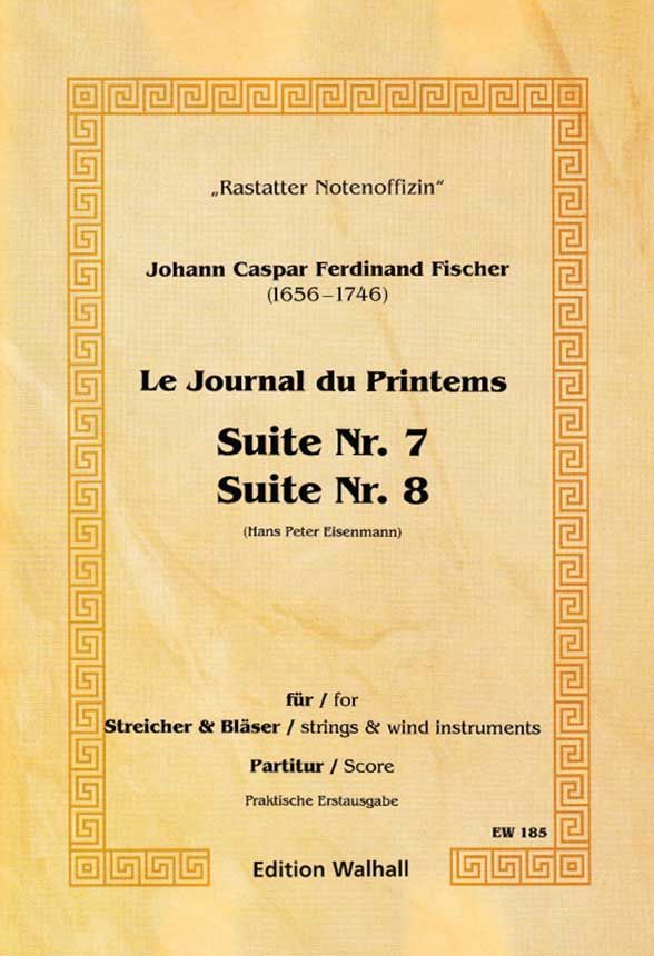 8 (Orchester) Suiten, FWV 1-8, für Dessus (1.Violine/Oboe/Flöte), Hautecontre (2. Violine/Oboe), Taille (1.Viola/Gambe), Quinte (2.Viola/Gambe), Basse (Gambe/Violoncello/Fagott) & B.c., herausgegeben von Hans Peter Eisenmann.