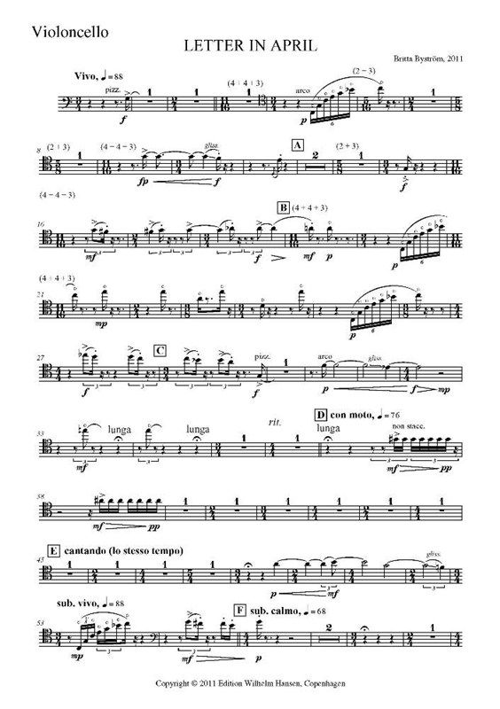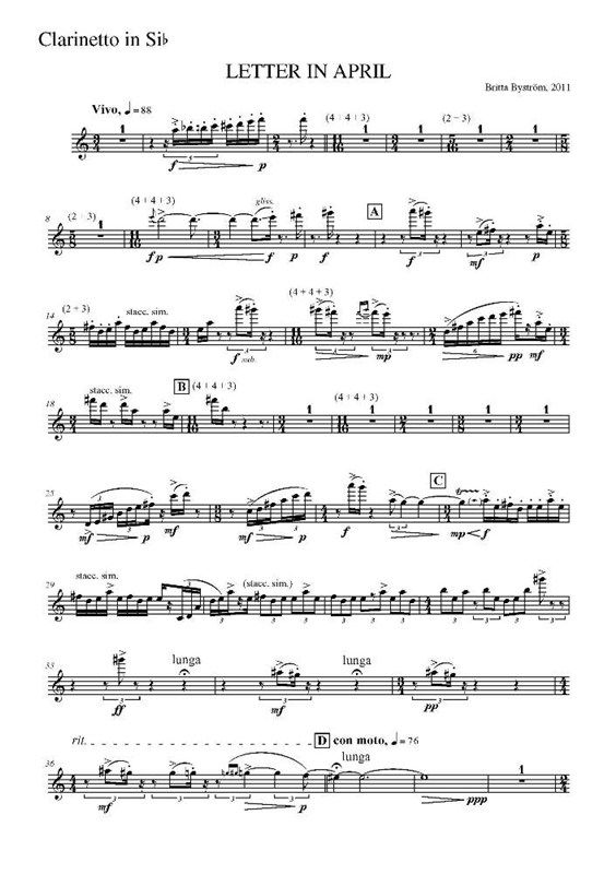 For clarinet, violin, cello and piano. In Danish: BREV I APRIL. Score: WH31345