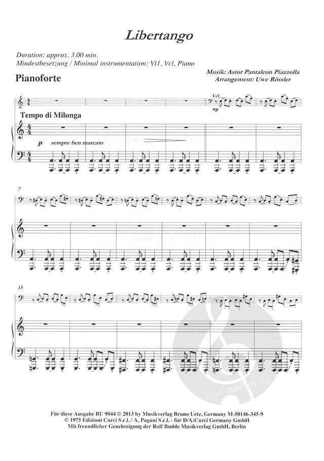Piano Trio (opt. Parts for 2nd Violin, Bass, Flute and Clarinet) (Tango)