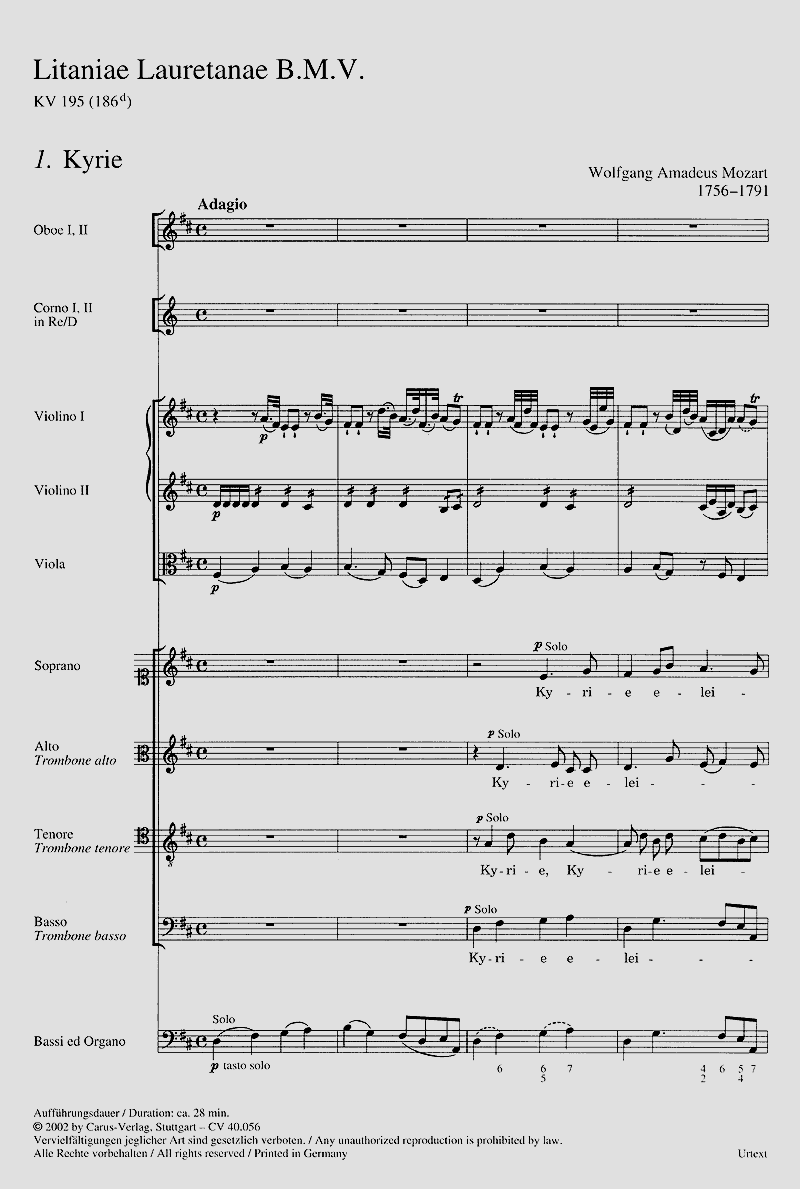 Litaniae Lauretanae B.M.V. in D-Dur KV195