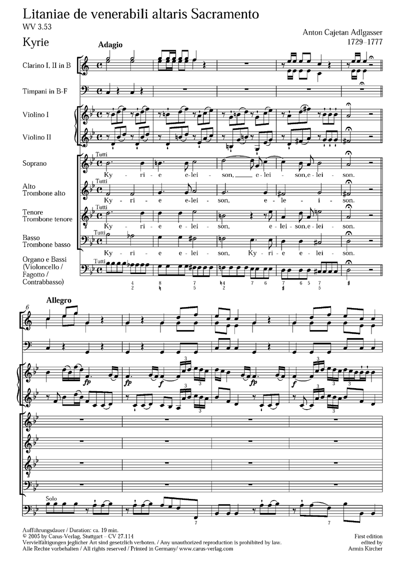 Diese Ausgabe erhielt den Adlgasser-Kulturpreis 2005 - Soli SATB, Coro SATB, 2 Ctr, Timp, Trb alto, 2 Vl, Bc, [2 Trb]