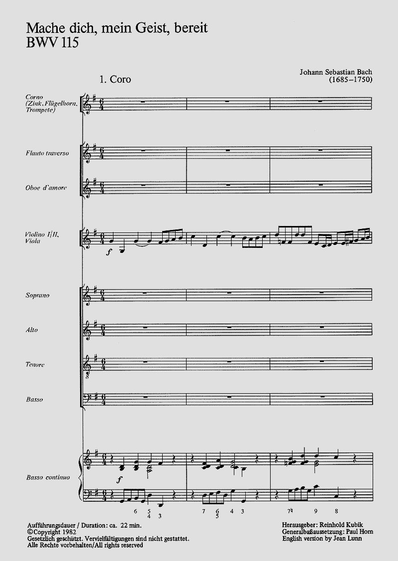 - Besetzung Soli, Gemischter Chor (SATB), Querflöte, Oboe, Cello, Streicher und Orgel
