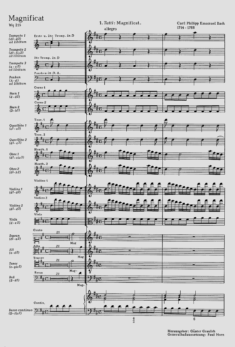 - Besetzung Soli, Gemischter Chor (SATB), 2 Querflöten, 2 Oboen, Fagott, 2 Hörner, 2 Violinen, Viola und Basso Continuo