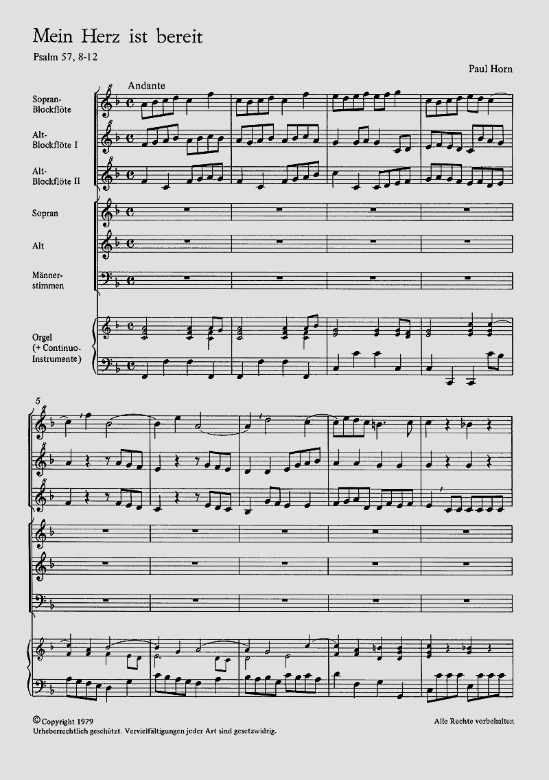 - Besetzung Gemischter Chor (SAM), 3 Blockflöten und Orgel
