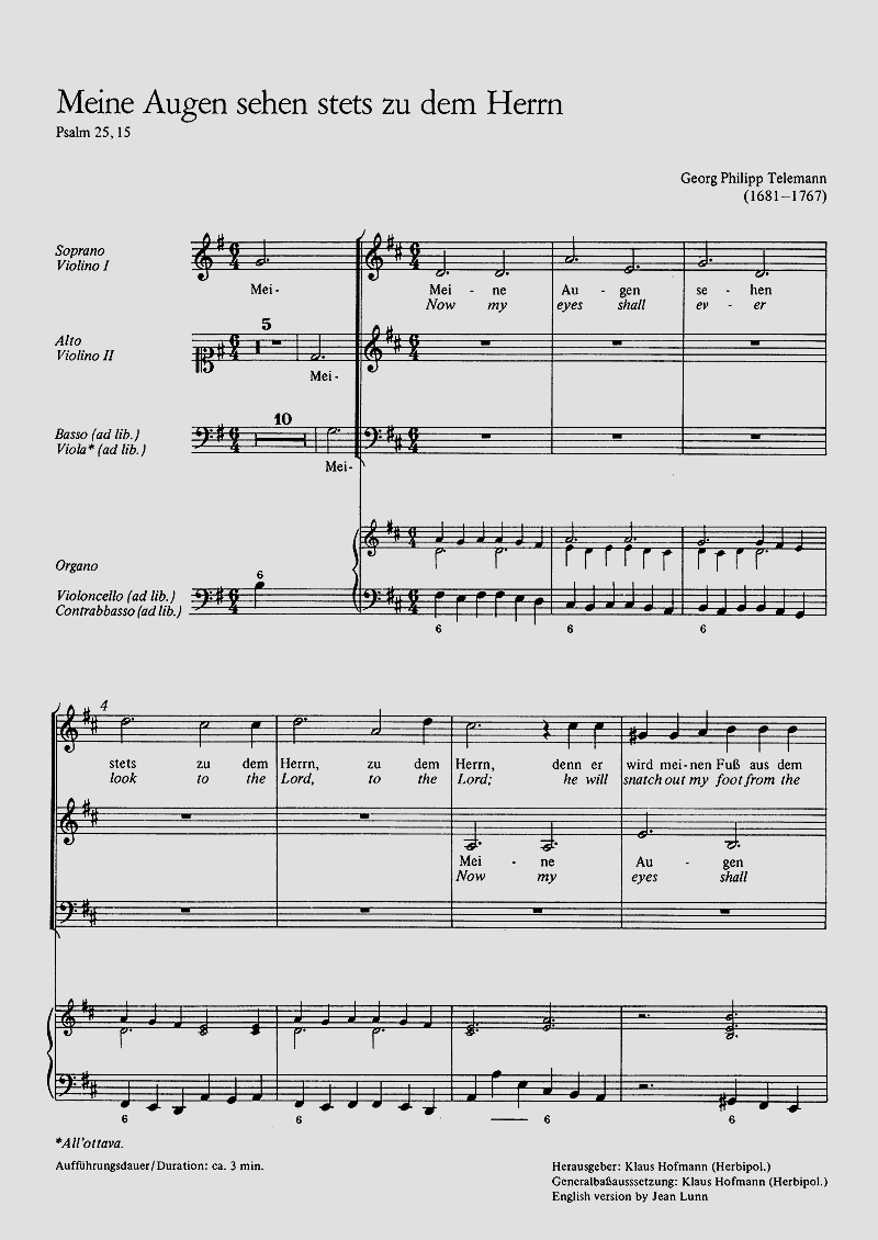 Eingangschor aus der Kantate zum Sonntag Oculi - aus dem Kantatenjahrgang 'Musicalisches Lob Gottes in der Gemeine des Herrn' - Coro SS[B] o SA[B], 2 Vl, [Va], Bc