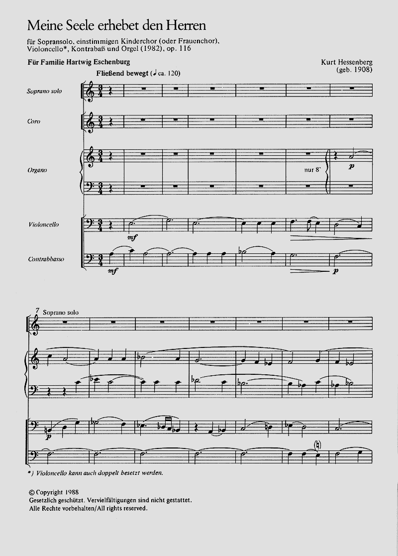 - Besetzung Gesang (hoch), Kinderchor, Cello, Kontrabass und Orgel