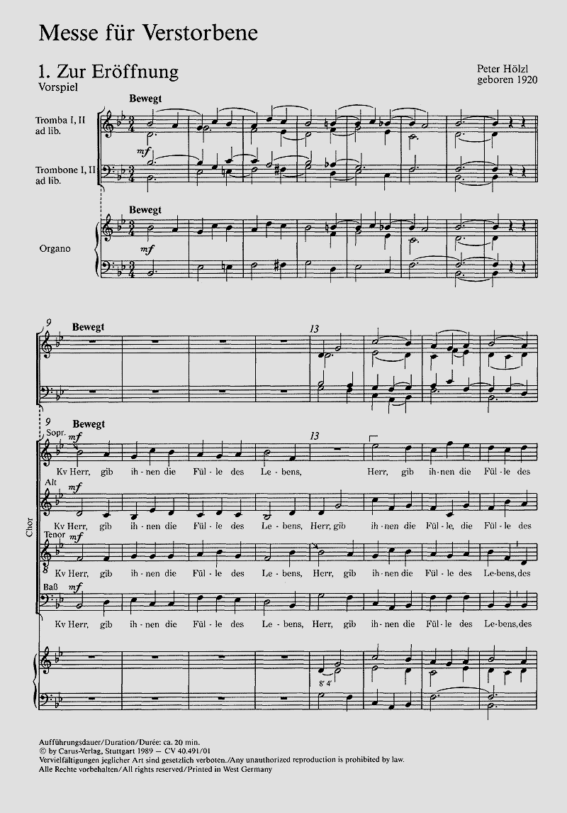 - Besetzung Gemischter Chor (SATB), 2 Trompeten, 2 Posaunen und Orgel