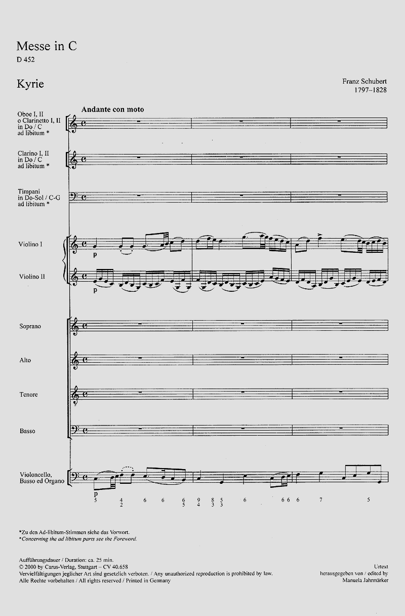 - Besetzung Soli, Gemischter Chor (SATB), Streicher und Orgel