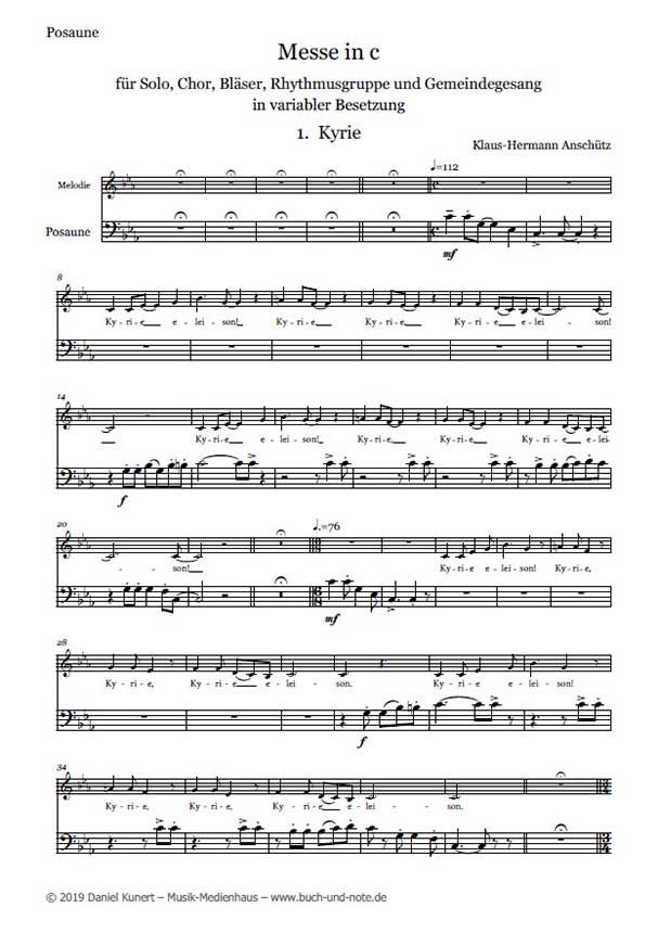 Diese Rock-Messe in c-moll entstand aus der kirchenmusikalischen Praxis in Gottesdienst und Konzert. Klaus-Hermann Anschütz, Dekanatskirchenmusiker in Celle, hat langjährige erfahrung mit Gemeinden, Chören und Bands und hat aus der alltäglichen Arbeit heraus diese Messe geschrieben. Sie kann sowohl in großer Besetzung als auch in kleiner besetztem musikalischen Umfeld musiziert werden.