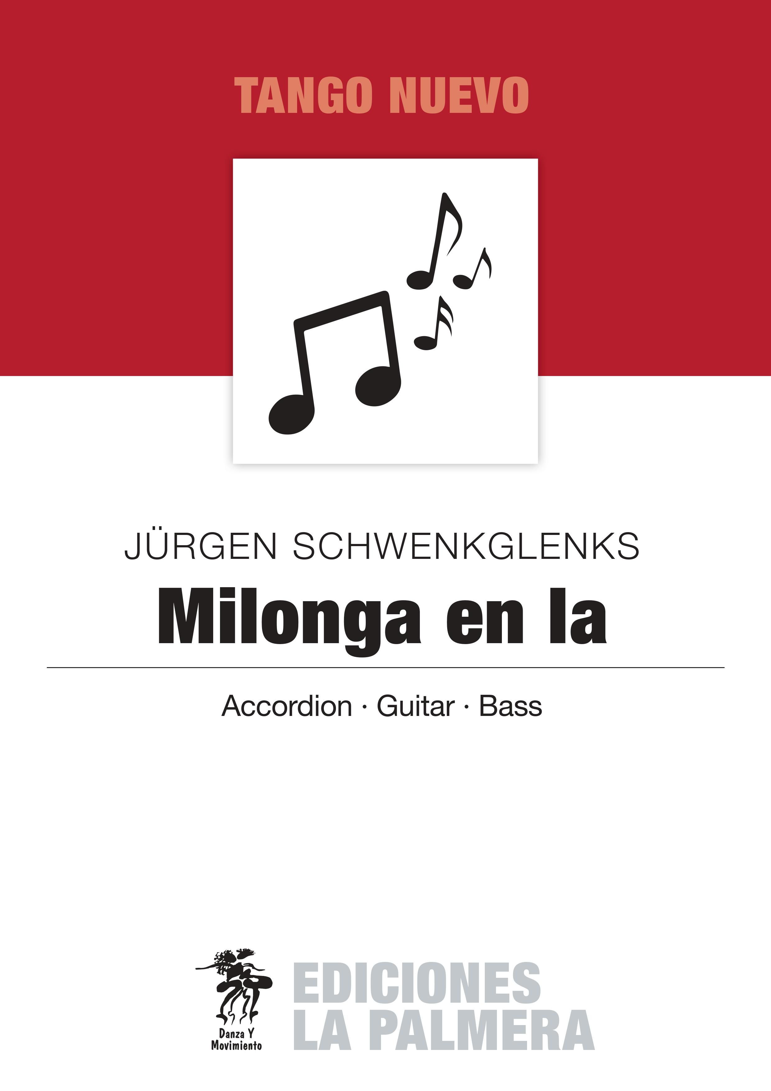 Dieses Notenheft enthält die Noten zum Tango Nuevo "Milonga en La" von Jürgen Schwenkglenks. Ausgabe für Akkordeon, Gitarre und Bass in mittlerem Schwierigkeitsgrad in a-Moll.