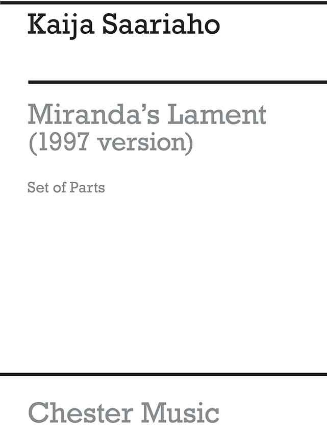 The set of parts for the original version of Miranda's Lament. Composed in 1997, the piece is part of 'The Tempest Songbook' and was dedicated as a birthday present for Paavo Heininen.