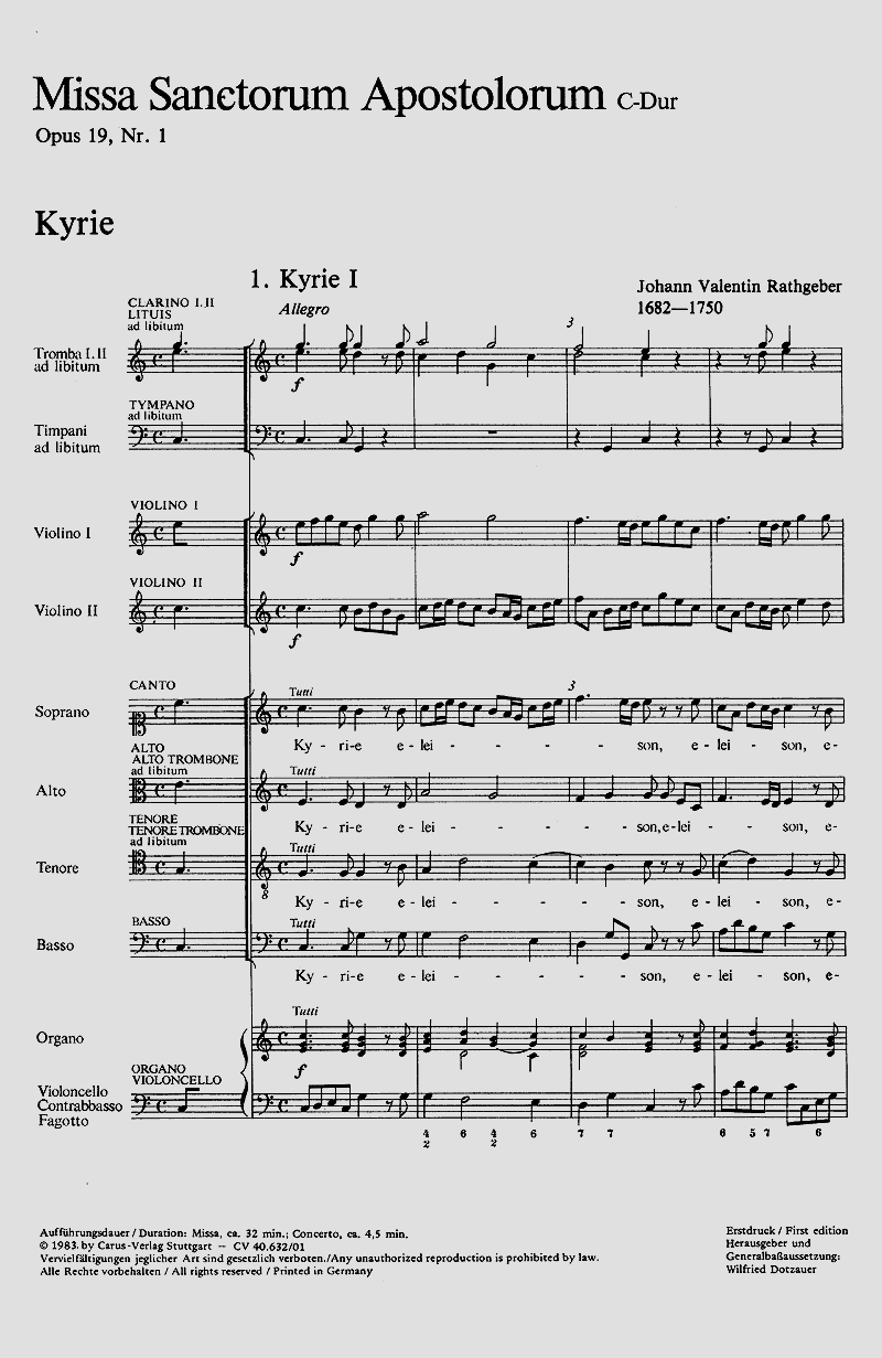 Soli SATB, Coro SATB, 2 Vl, Bc, [2 Tr, 2 Trb, Timp]