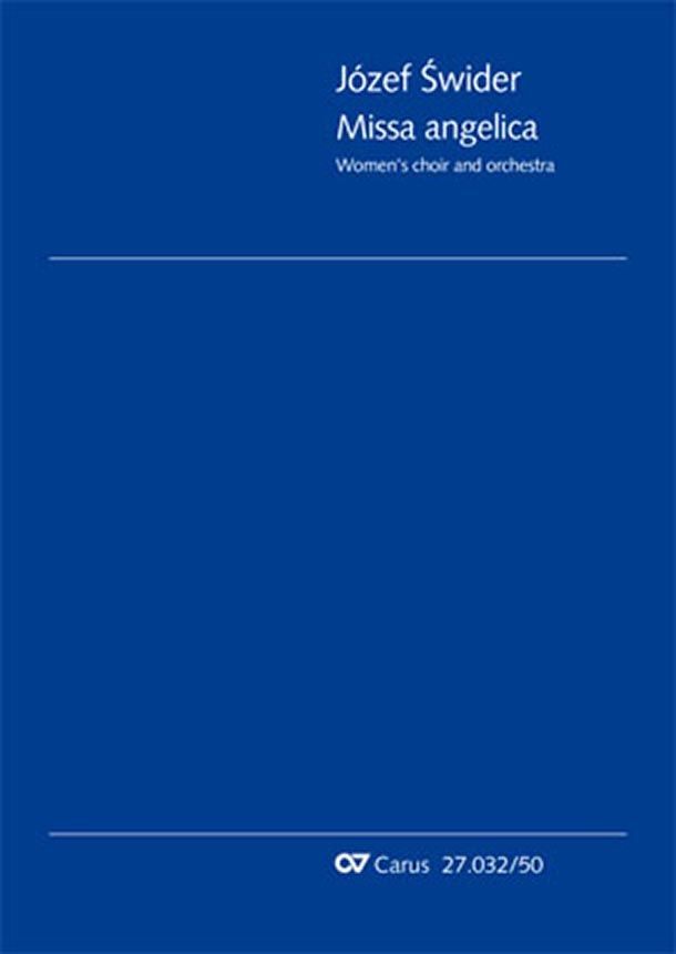 Solo S, Coro SSAA, 2 Vl, Va, Vc, Cb, Timp, Perc Der aus Polen stammende J¾zef Swider hat mehr als 250 Kompositionen für Chöre geschrieben, die sich großer Beliebtheit erfreuen. Heute gilt er als meist gespielter polnischer Komponist. Seine reich orchestrierte Missa angelica (1998) gibt es in je zwei Fassungen für Frauen- und gemischten Chor: Die Eine für Orchester, die Andere für Klavier oder Orgel (CV27032-03 bzw. CV27032-53).