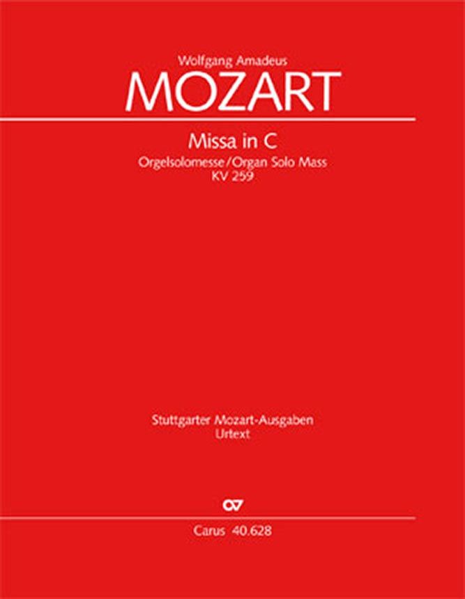 Orgelsolomesse - Der Beiname dieser Messe verdankt sich der eigenständig-solistischen Präsenz des Orgelinstruments während des 'Benedictus'-Abschnittes. Damit steht KV 259 in einer bis in die 1730er Jahre zurückreichende Tradition, die sich durch Komponistennamen vor allem aus dem Wiener Raum, wie Georg Reuter, Joseph Haydn, Karl Ditters von Dittersdorf oder Johann Baptist Vanhal belegen lässt. Soli SATB, Coro SATB, 2 Ctr, Timp, 2 Vl, Bc, [2 Ob, 3 Trb]