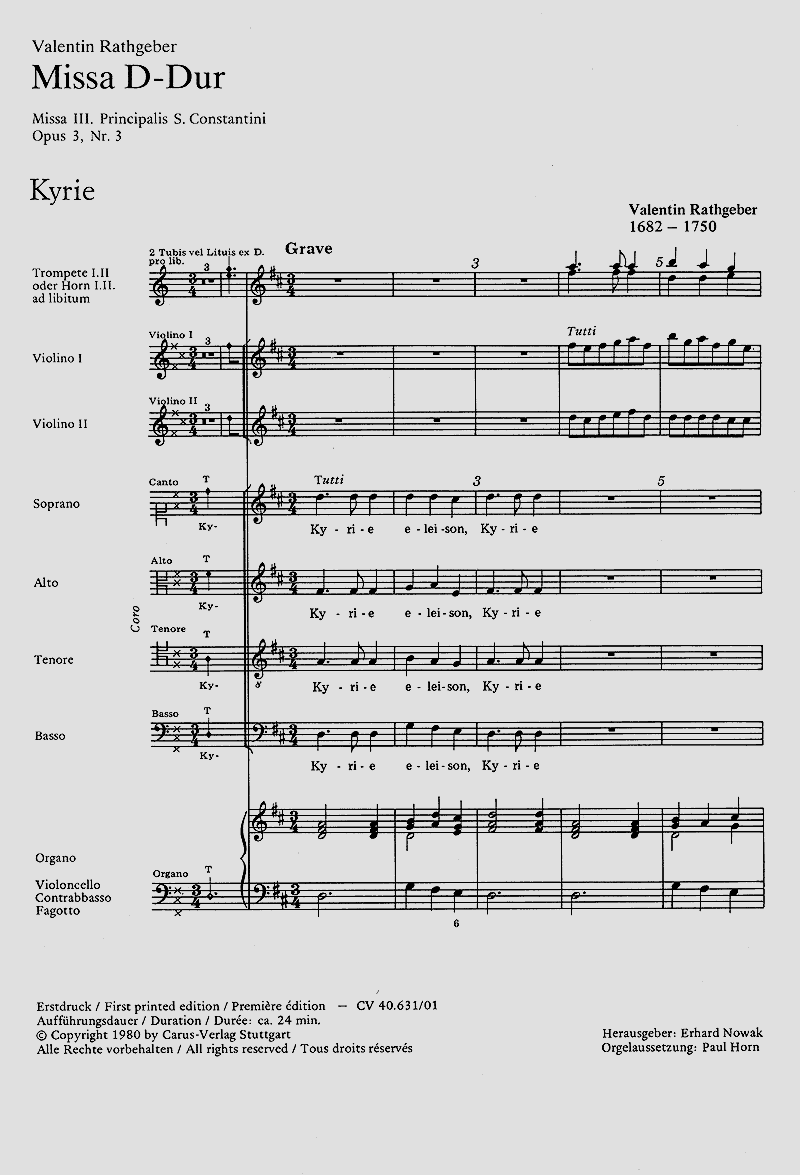 - Besetzung Soli, Gemischter Chor (SATB), 2 Trompeten, 2 Violinen und Basso Continuo