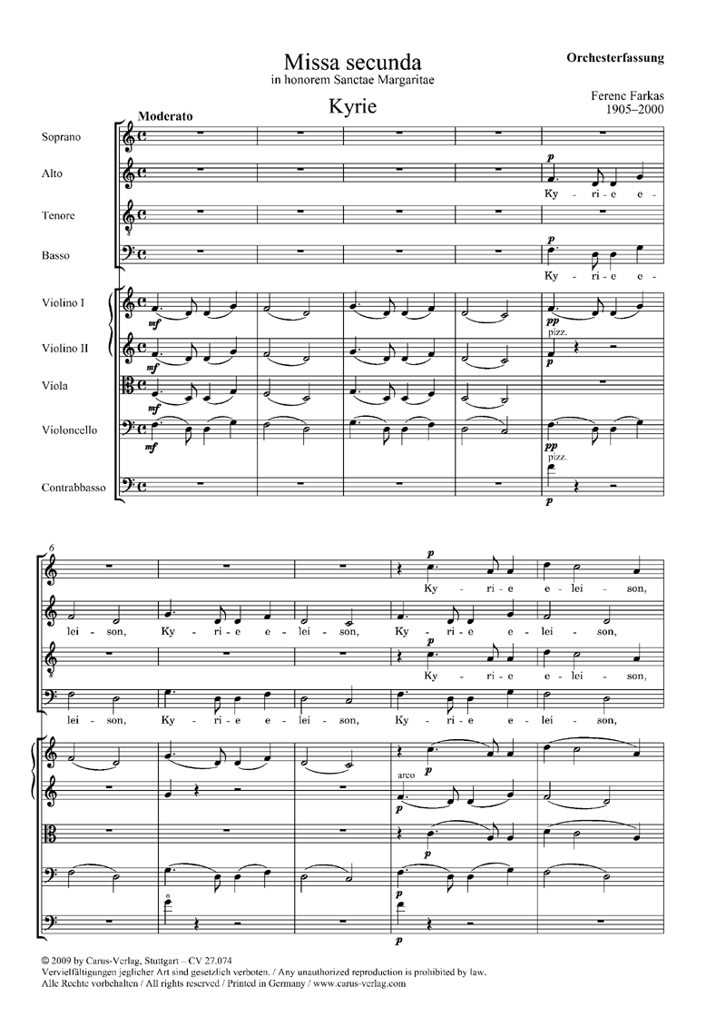 - Besetzung Gemischter Chor (SATB), 2 Violinen, Viola, Cello und Kontrabass