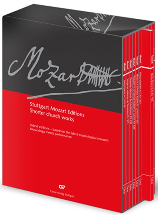 Die derzeitig in ihrem Notentext aktuellste Ausgabe der geistlichen Werke Wolfgang Amadeus Mozarts bietet allen Musikern und Liebhabern nach dem Schuber mit allen Messen und Vespern (CV 51.000) nun auch alle weiteren geistlichen Vokalwerke Mozarts in Studienpartituren im Schuber an.
