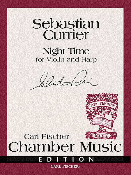 Night Time, a substantial concert work for Violin and Harp, we written in 1998 for Marie-Pierre Langlamet and Jean-Claude Velin, who commissioned it. In five short, vivacious movements (Dusk, Sleepless, Vespers, Nightwind and Starlight), lasting about 16 minutes, Currier brilliantly depicts some of the characteristic nighttime moods and situations with music designed to display the most ingratiating qualities of the Violin and Harp. Night Time is a challenging work ideal, for two experienced performers.