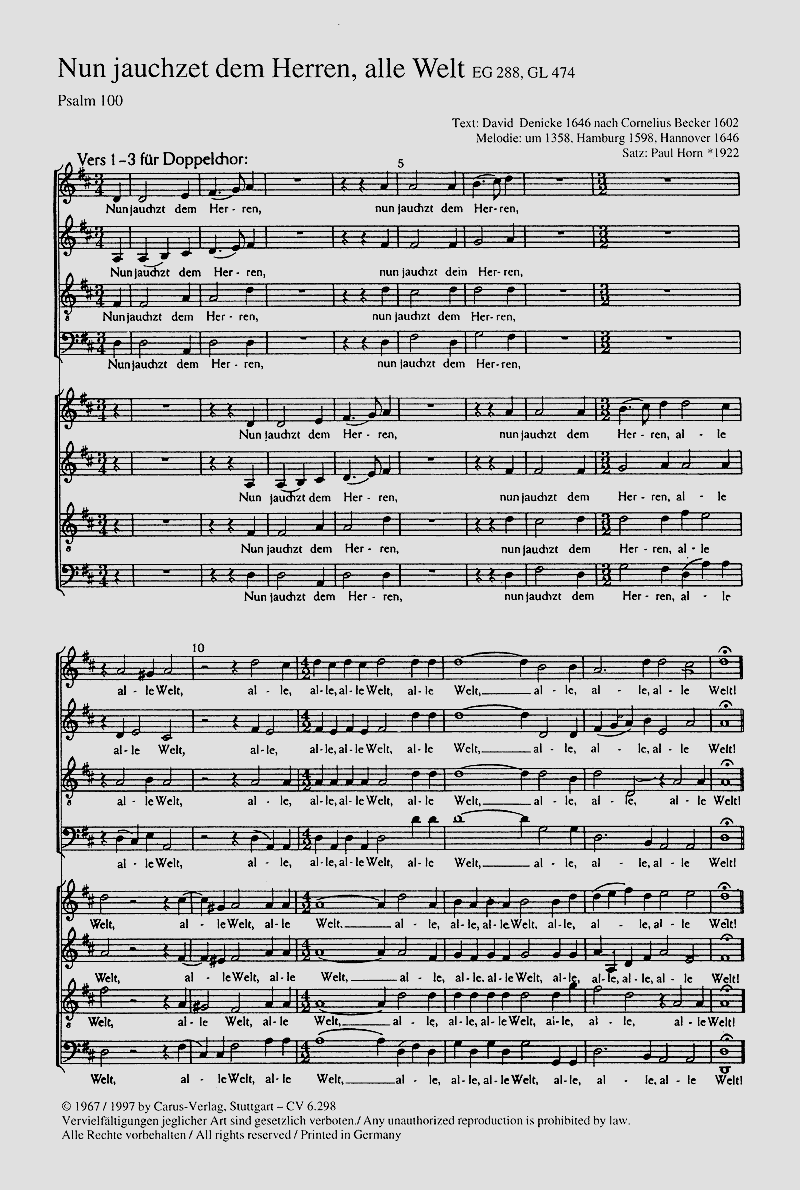 Nun jauchzt dem Herren, alle Welt