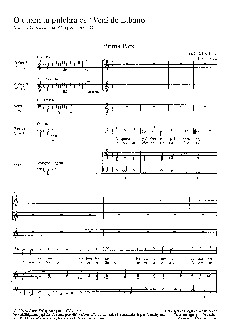 - Besetzung 2 Violinen, 2 Singstimmen und Orgel