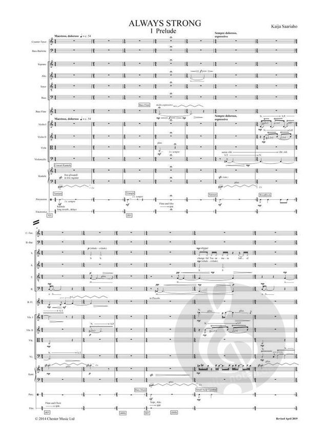Kaija Saariahos 2015 entstandene Oper Only The Sound Remains wurde von der Niederländischen Nationaloper, der Finnischen Nationaloper, der Opera de Paris, dem Teatro Real Madrid und der Canadian Opera Company in Auftrag gegeben. Das Werk kombiniert zwei Kurzopern, die von japanischen Nôh-Dramen inspiriert sind: "Always Strong" ("Tsunemasa") und "Feather Mantle" ("Hagoromo"), basierend auf Übersetzungen von Ezra Pound und Ernest Fenollosa. Es ist für Countertenor und Bassbariton mit einem Vokalquartett und einem Kammerensemble sowie einem Tänzer besetzt.