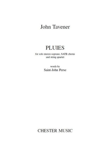 John Tavener 's Pluies is a work for Solo Mezzo-Soprano, SATB Chorus and String Quartet. The piece was first performed on 31st January 2015 and lasts around 5 minutes. This is the full score. The words for Pluies come from a poem of the same name by Saint-John Perse.