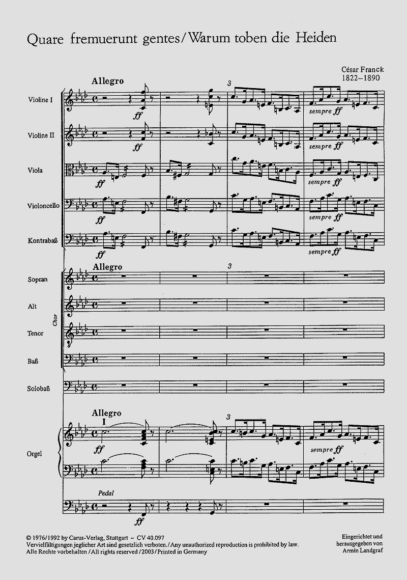 - Besetzung Gesang (tief), Gemischter Chor (SATB), 2 Violinen, Viola, Cello, Kontrabass und Orgel
