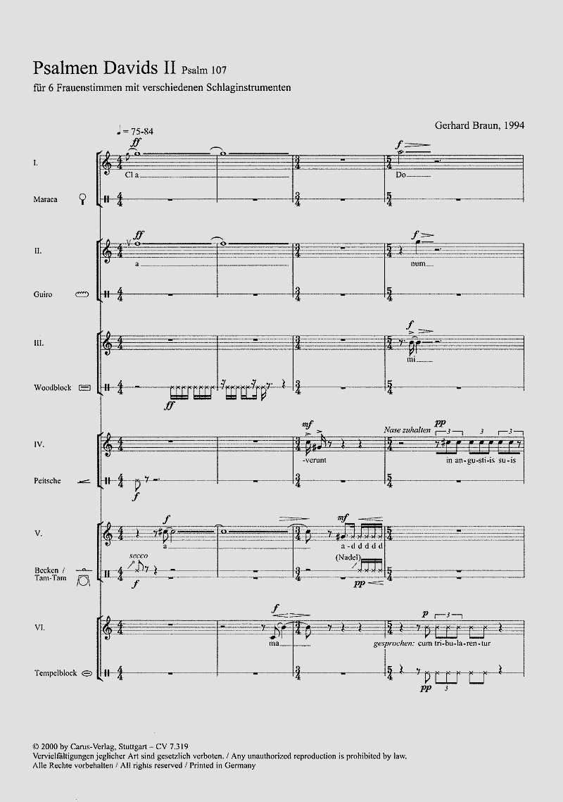 Die zum Herren riefen - sechs Frauenstimmen, Perc (Maraca, Guiro, Woodblock, Peitsche, Becken, Tam-Tam, Tempelblock)