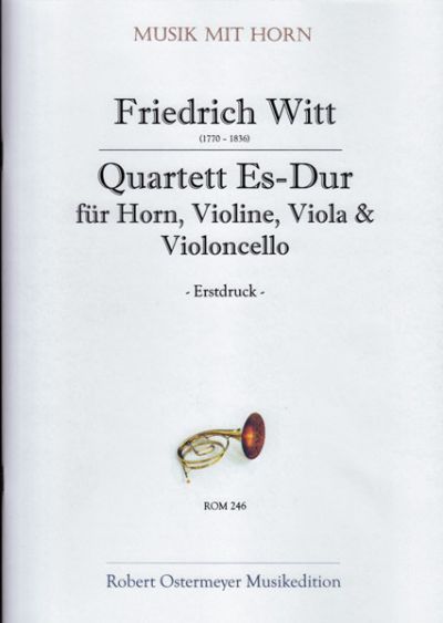 Das hier im Erstdruck vorliegende Quartett für Horn, Violine, Viola und Violoncello hat als Vorlage eine Abschrift eines unbekannten Kopisten aus der fürstlichen Bibliothek von Löwenstein-Wertheim. Der Titel lautet: Quatour / pour /Cor, Violin, Alto a Violoncello / Composses par / F. Witt / Maitre de Capelle de S. a. F. le Grand Dux / de Wirzebourg