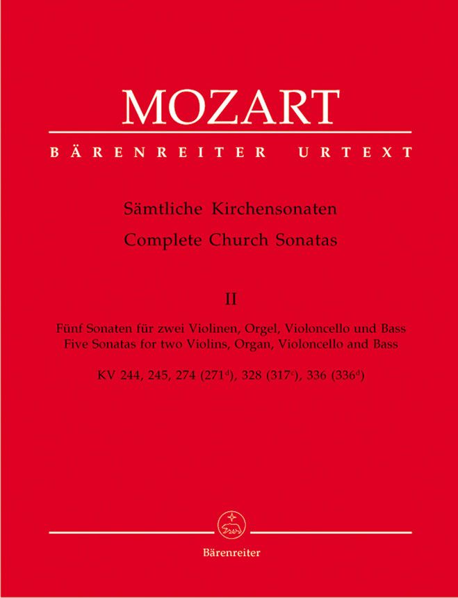 5 Sonaten für Orgel und Streicher (ohne Viola). Urtext der Neuen Mozart-Ausgabe. Orgel Solo, Streicher - Spielpartitur; Stimmensatz; Urtextausgabe