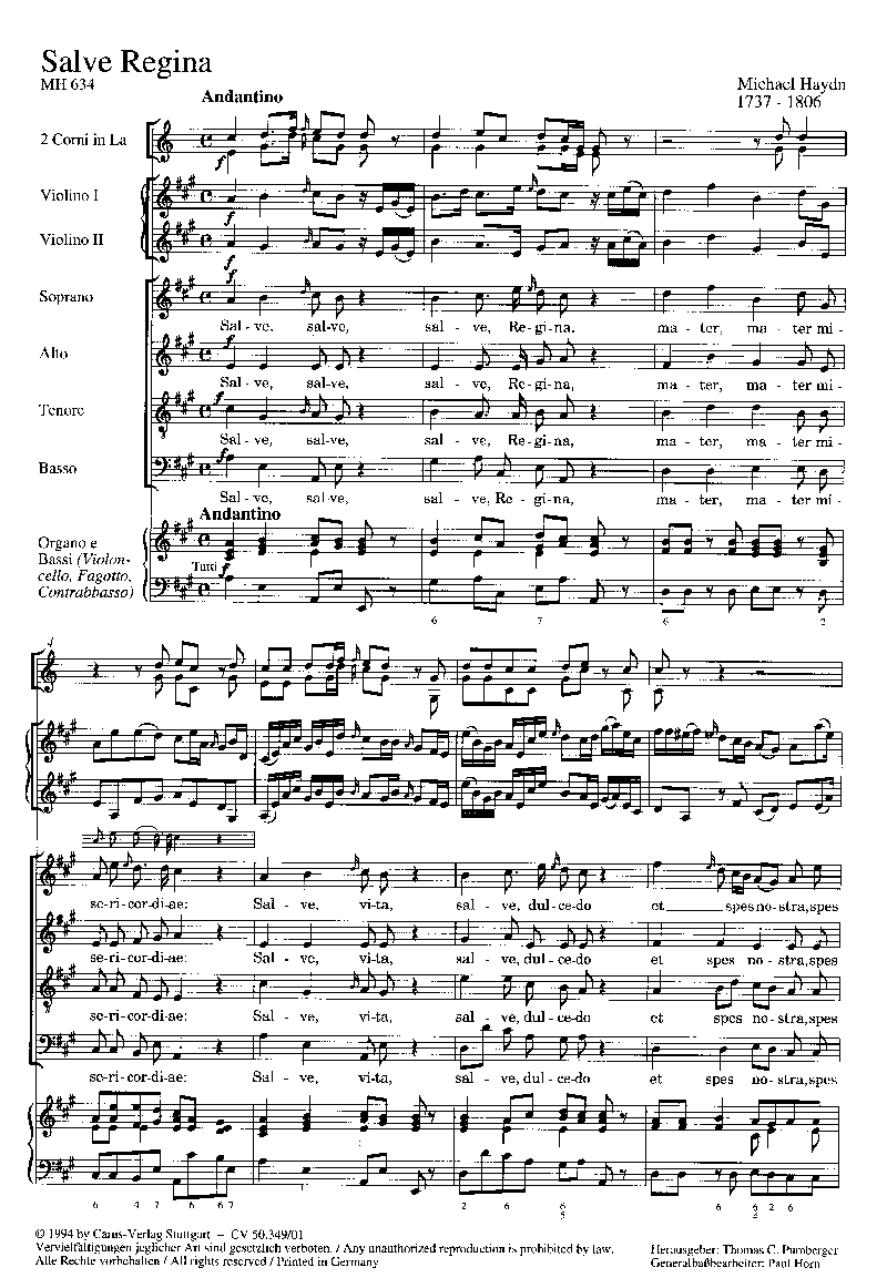 - Besetzung Gemischter Chor (SATB), 2 Hörner, 2 Violinen und Basso Continuo