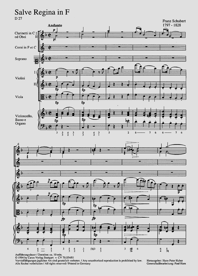 - Besetzung Gesang (hoch), 2 Klarinetten, 2 Hörner, 2 Violinen, Viola, Cello und Orgel