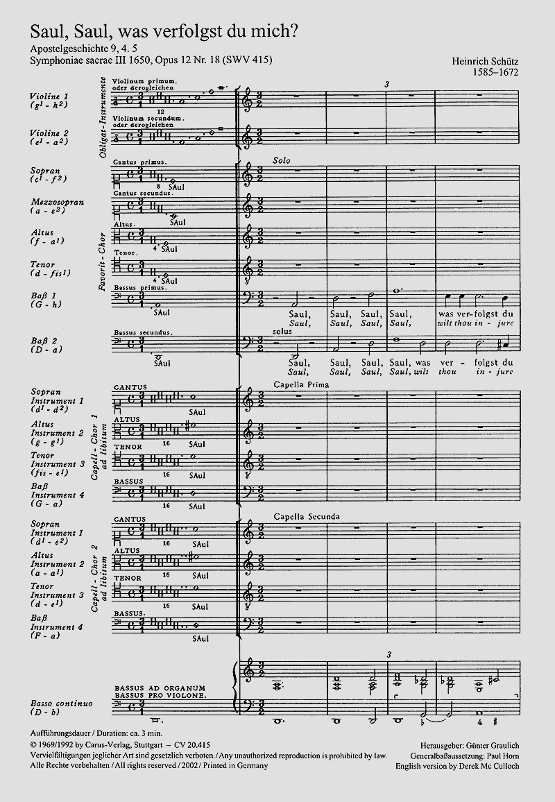 - 3 Gemischte Chöre (SATB), 3 Kornette, 3 Posaunen und Basso Continuo