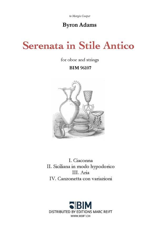 Meine Serenata in Stile Antico ist stark von der italienischen Barockmusik des 17. Jahrhunderts geprägt. Der eröffnende Satz, Ciaconna, basiert auf einer sich wiederholenden Basslinie von vier Takten. Die darauffolgende Siciliana in modo hypodorico ist eine Hommage an Pater Athanasius Kircher, einen Jesuiten und Universalgelehrten, der sowohl über Musiktheorie als auch über Wissenschaft und Archäologie schrieb und möglicherweise eines der ersten naturhistorischen Museen gründete. Der dritte Satz, Aria, ist eine Fantasie über eine der bekanntesten Monodien des 17. Jahrhunderts, "Amarilli, mia bella" von Giulio Caccini, veröffentlicht im Jahr 1601. Das Finale ist als Thema mit Variationen gestaltet und basiert auf einer lebhaften Canzonetta von Pater Orazio Vecchi, "So ben mi c'ha bon tempo" (was sich etwa mit "Ich kenne jemanden, der eine gute Zeit hat" übersetzen lässt). Die Coda dieses letzten Satzes ist selbst eine Variante einer Variation von Vecchis Canzonetta, wie sie in Terpsichore von Michael Praetorius erscheint, einer Sammlung von etwa 300 Tänzen aus dem Jahr 1621. Ich habe die Serenata in Stile Antico für Oboe und Streicher instrumentiert. Es handelt sich jedoch keineswegs um ein Oboenkonzert: Die Oboe repräsentiert vielmehr eine äußerst kleine Holzbläsergruppe, bestehend aus nur einem Instrument. Meine Vorstellung bezüglich der "Aufführungspraxis" dieses janusköpfigen Werkes ist ganz einfach: Es soll geschmackvoll auf modernen Instrumenten und in moderner Weise gespielt werden. Beim Komponieren orientierte ich mich an dem Vorbild der bezaubernden Antiche arie e danze von Ottorino Respighi. Die Serenata in Stile Antico ist Margie Cooper gewidmet. Margie und ihr Ehemann Grant sind seit Jahrzehnten enge musikalische und persönliche Freunde von mir. - Byron Adams