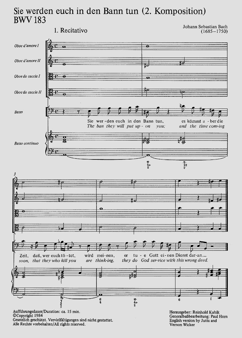 - Besetzung Soli, Gemischter Chor (SATB), 4 Oboen, Cello, Streicher und Orgel