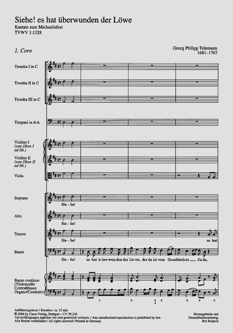 - Besetzung Soli, Gemischter Chor (SATB), 3 Posaunen, Pauke, 2 Violinen, Viola und Basso Continuo