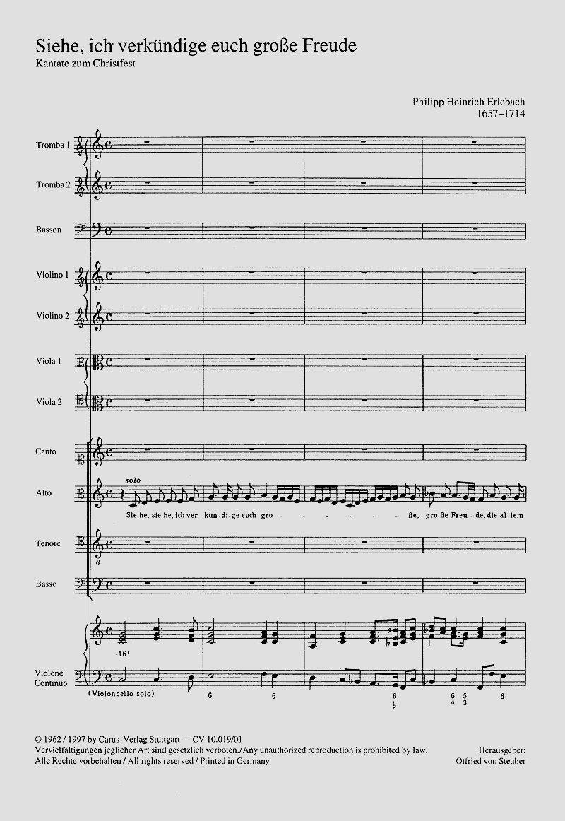 - Besetzung Soli, Gemischter Chor (SATB), Fagott, 2 Trompeten, 2 Violinen, 2 Violen und Basso Continuo