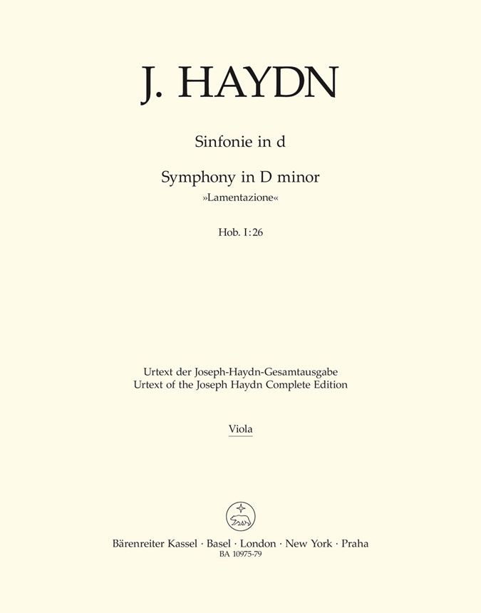 Schon zu Haydns Lebzeiten trug die Sinfonie Nr. 26 den Beinamen 'Lamentazione', obwohl nicht nachgewiesen ist, dass dieser von Haydn stammt. Das Werk muss vor 1770 entstanden sein. Im ersten und zweiten Satz zitiert Haydn Teile Gregorianischer Melodien, die in vorösterlicher Passionsmusik Verwendung fanden. Da es üblich war, während des Gottesdienstes nur einzelne Sätze aus Instrumentalwerken zu spielen, ist anzunehmen, dass die beiden Sätze unabhängig voneinander aufgeführt wurden - und möglicherweise auch entstanden sind.