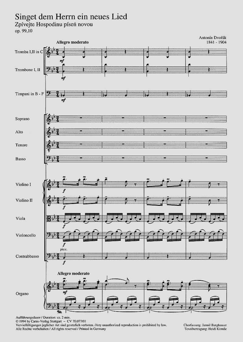 - Besetzung Gemischter Chor (SATB), 2 Trompeten, 2 Posaunen, Pauke, Streicher und Orgel