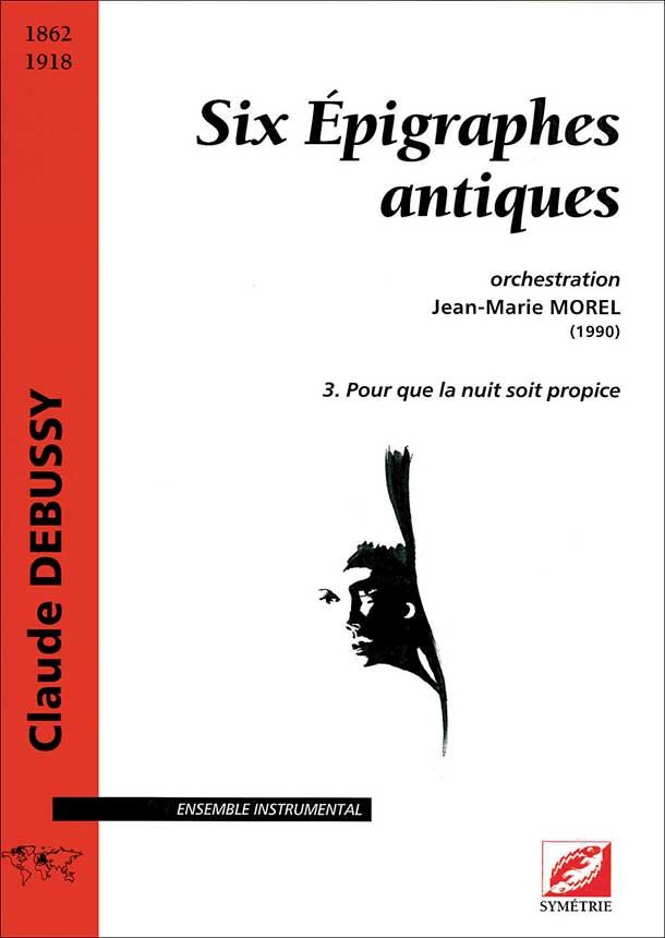 Im Jahr 1990 hatte ich die Idee - nach vielen anderen! - eine Instrumentalfassung dieser Épigraphes für die Lehrer der Nationalen Musikschule in Chalon-sur-Saône zu schreiben, deren Direktor ich damals war. Ich erhielt die Partitur der Originalmusik, die sich sehr von den Épigraphes unterscheidet, da sie aus kurzen Fragmenten besteht, die für 5 Instrumente geschrieben sind: 2 Flöten, 2 Harfen und Celesta. Sie bestätigte meine erste Idee, 2 Flöten und eine Harfe zu verwenden, und ich vervollständigte die Besetzung mit einem solistischen Streichquintett und anderen Blasinstrumenten, die die Klavierfassung farblich zu suggerieren schien: Oboe, Klarinette, Fagott und Horn.