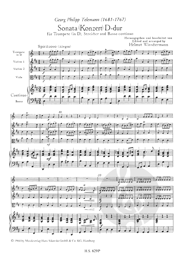 - Besetzung Trompete in D, Streicher und Basso Continuo