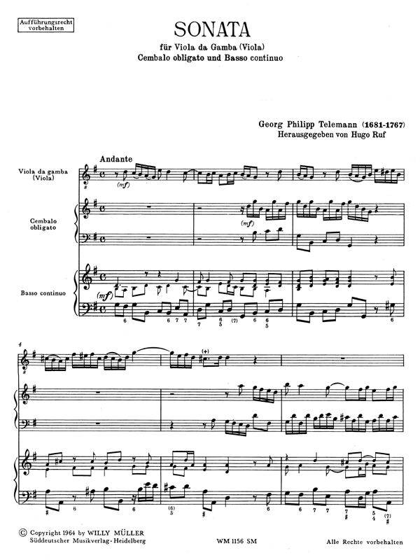 Gambensonate mit obligatem Cembalo (Stimme liegt der Partitur bei) und Basso continuo