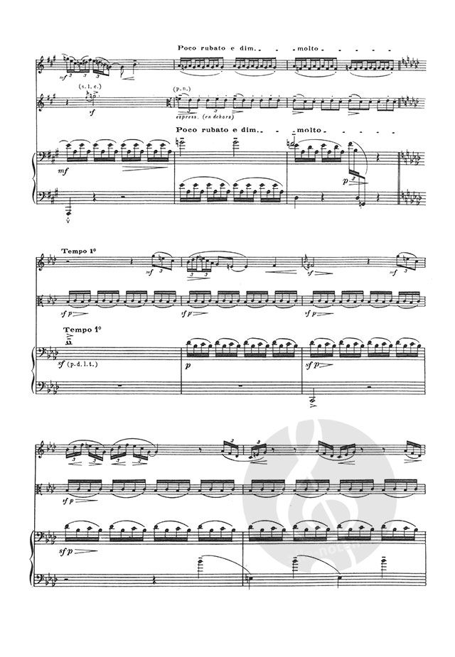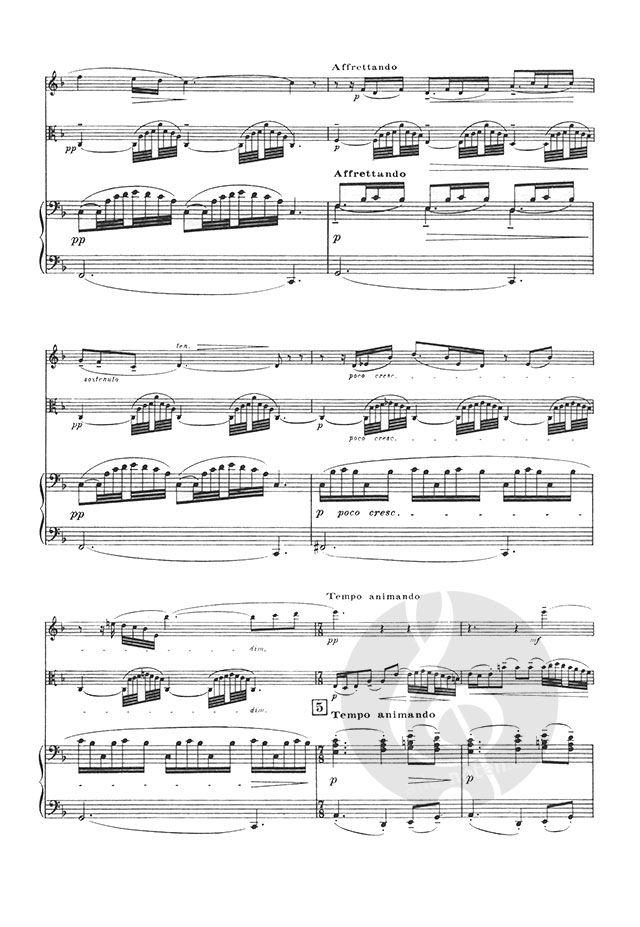 Claude Debussy's Sonate for Flute, Viola and Harp. Miniature score.