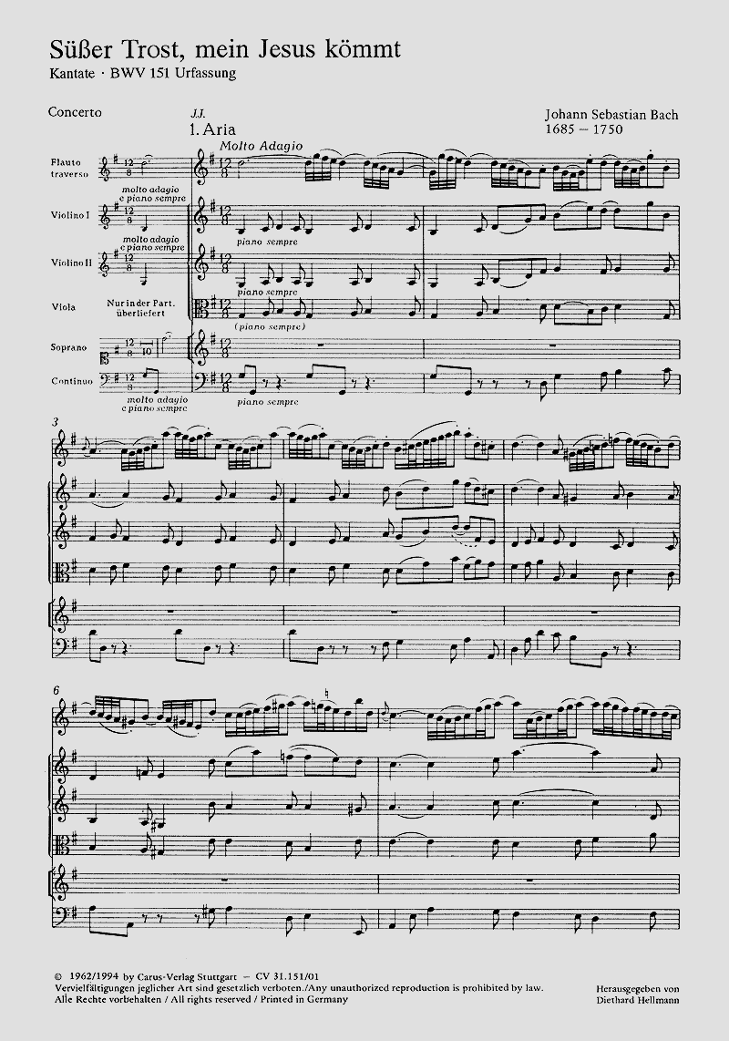 Kantate BWV 151 zum 3. Weihnachtsfesttag (Urfassung)