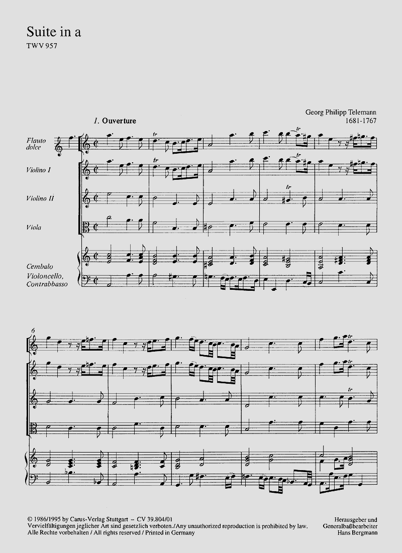 - Besetzung Blockflöte, 2 Violinen, Viola und Basso Continuo
