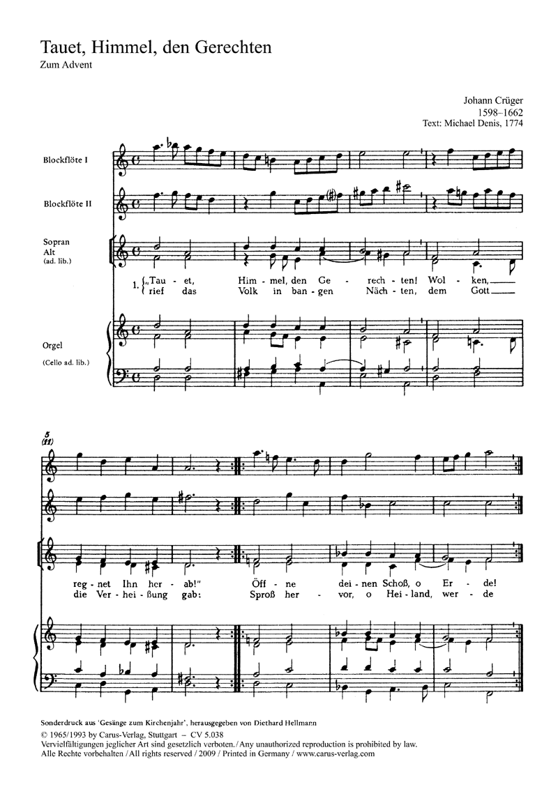- Besetzung Frauenchor (SA), 2 Blockflöten und Orgel