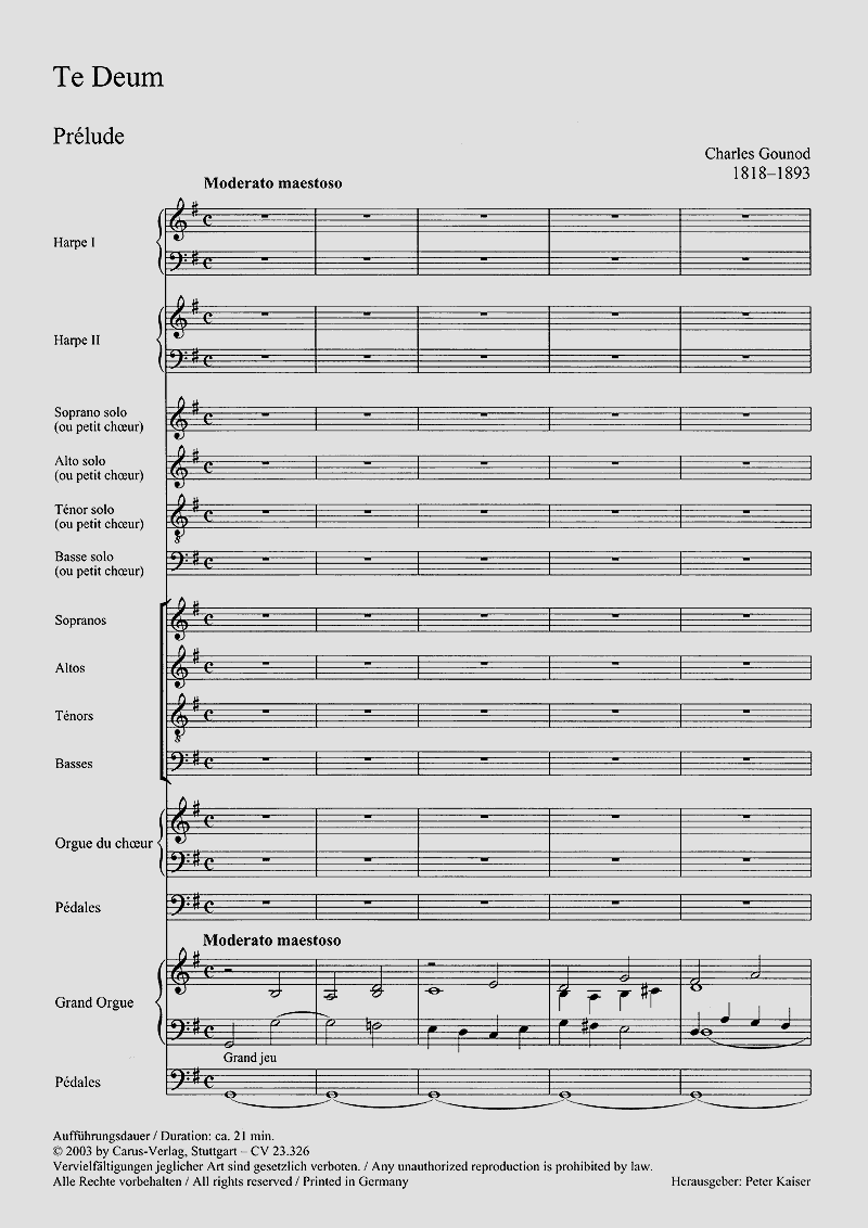 - Besetzung Soli, Gemischter Chor (SATB), 2 Harfen und 2 Orgeln