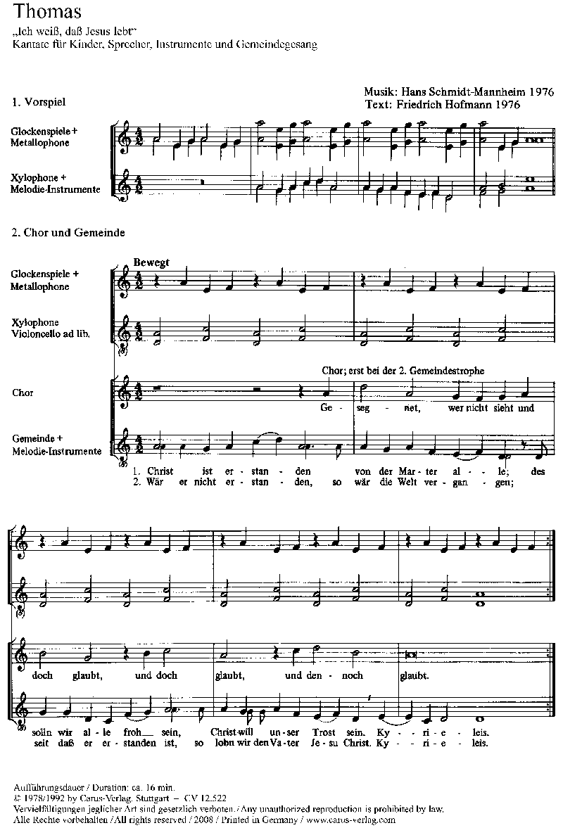 - Besetzung Kinderchor, Sprecher, Gemeinde, 2 Sopranblockflöten und Stabspiele
