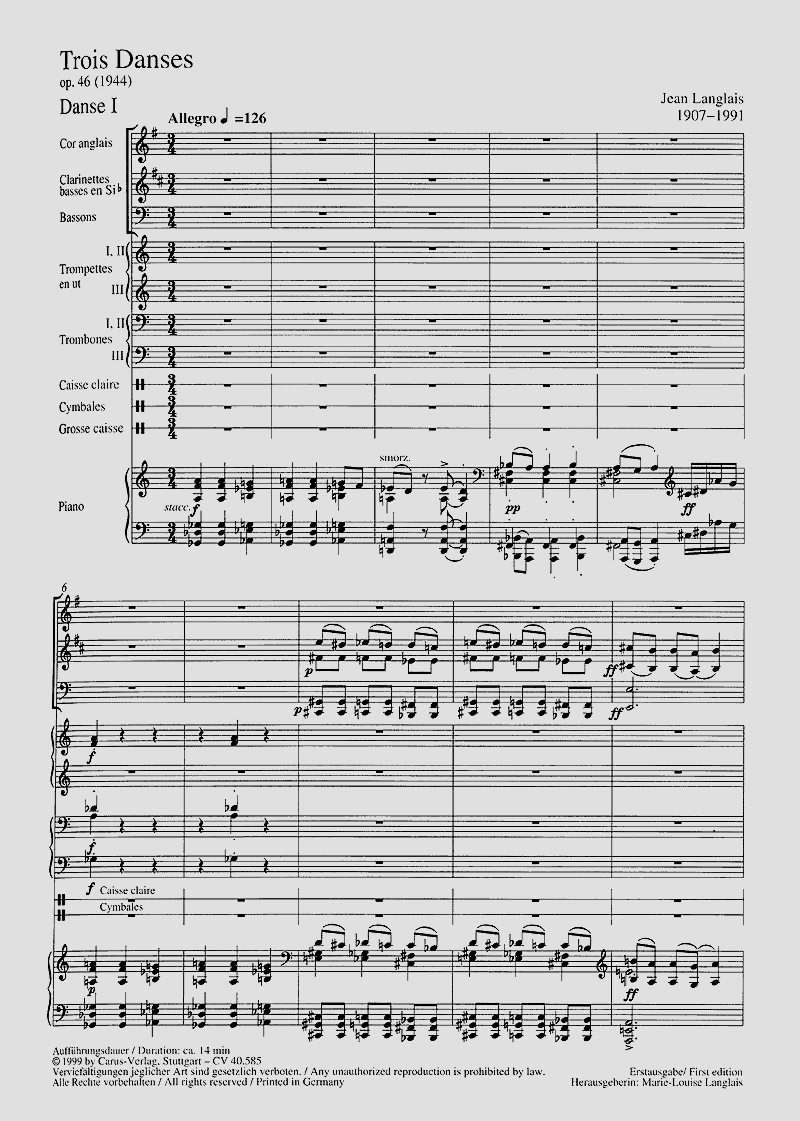 - Besetzung Englischhorn, 3 Bassklarinetten, 2 Fagotte, 3 Trompeten, 3 Posaunen, Percussion und Klavier